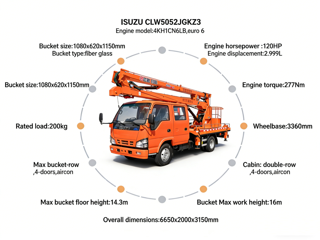 Built upon a rugged ISUZU commercial truck chassis, this unit combines high-speed road mobility with robust on-site performance. The ISUZU diesel engine delivers reliable power, excellent fuel efficiency, and compliance with stringent emission standards . The reinforced sub-frame and hydraulically extendable outriggers ensure a rock-solid foundation, with advanced stabilization technology that prevents tipping and keeps your team safe at any height .